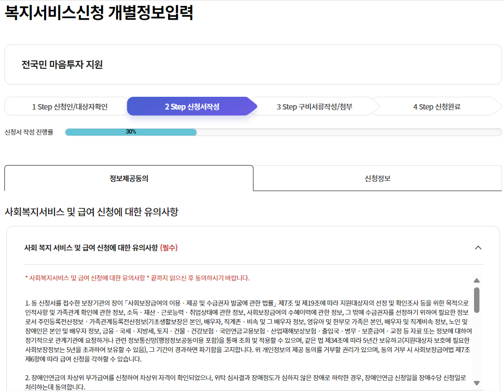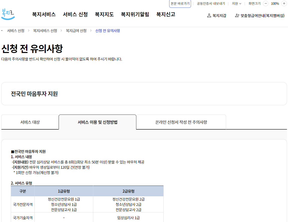 지금까지 복지로 홈페이지에서 전국민 마음투자 바우처 신청하는 화면을 안내드렸는데요,