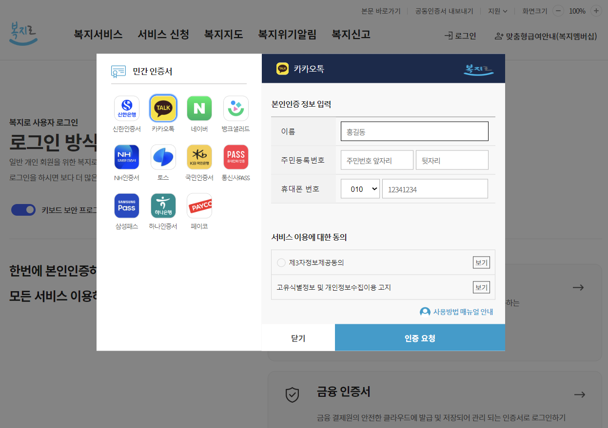 복지로 홈페이지로 이동하시면 아래와 같은 화면들이 차례로 나옵니다.
